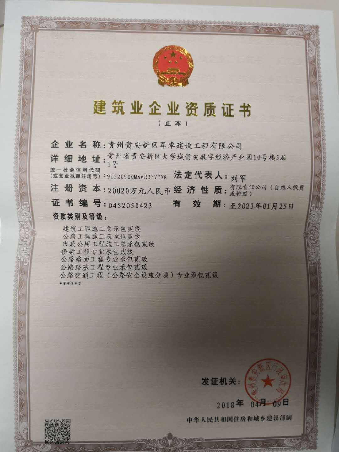贵州贵安新区军卓建设工程有限公司